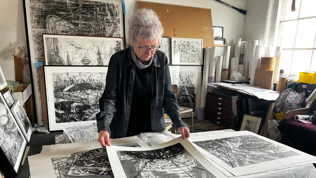 Local artist and educator, Jeanette Barnes, discusses her ongoing fascination with urban landscapes, her work with long-time partner Paul Brandford, and drawing her neighbourhood as it constantly changes