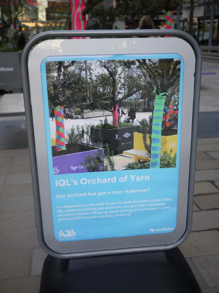 Since 2021, Stratford’s Endeavour Square has housed 20 fruit trees as part of the area’s climate innovation mission. Now that the frosty months of the year have arrived, International Quarter London (IQL) have coated up the trees with their first ever ‘yarn bomb’ project.